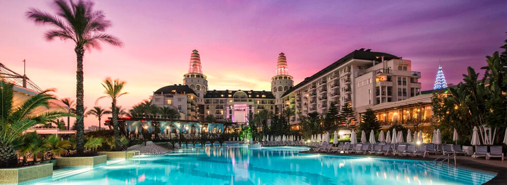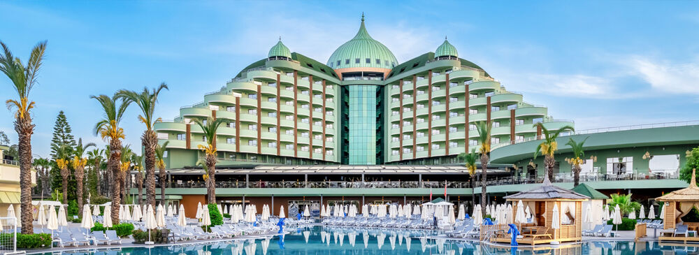 Delphin Palace is a luxury beachfront resort in Lara, Antalya, known for its high-quality service and elegant facilities.